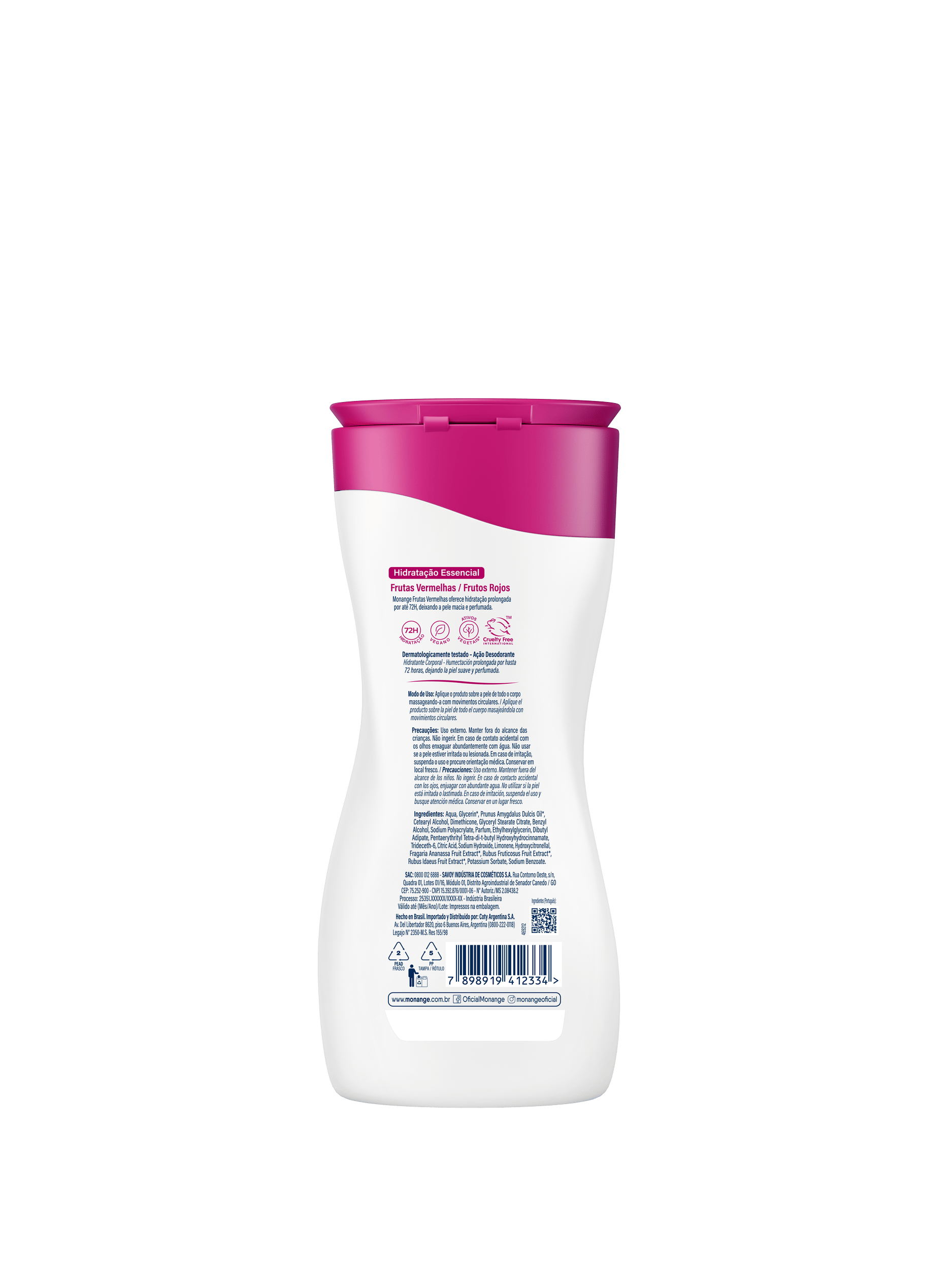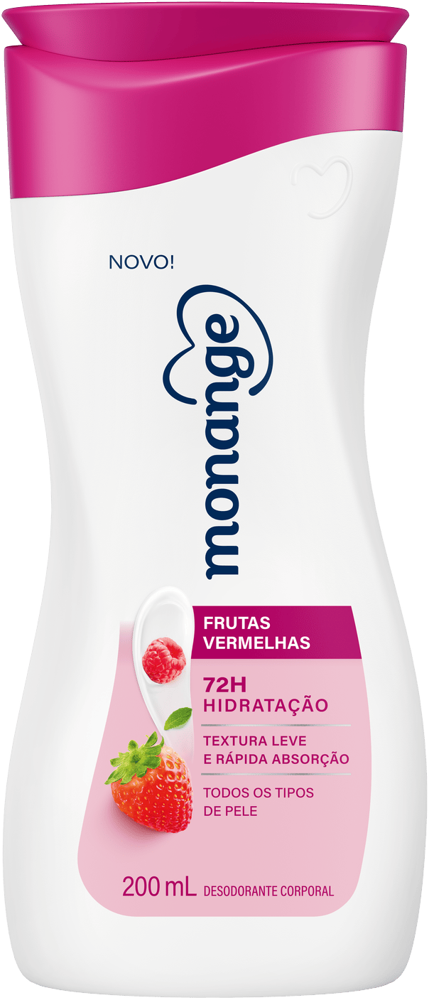 O Hidratante Monange Hidratação Essencial Frutas Vermelhas com Ação Desodorante 200ml é ideal para todos os tipos de pele. Com textura leve e de rápida absorção, ele proporciona um perfume frutal delicado. Sua fórmula, enriquecida com Extrato de Frutas Vermelhas, mantém a hidratação por 72 horas. Além disso, o produto tem a aprovação das consumidoras: 93% afirmam que ele deixou a pele mais macia*. Também disponível na versão 400ml! Conheça toda a linha de Loções Corporais Monange e escolha o seu favorito!