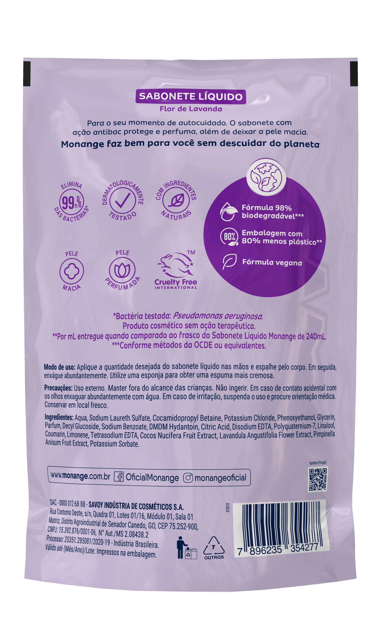 Sabonete Líquido Monange Flor De Lavanda Refil 400Ml
