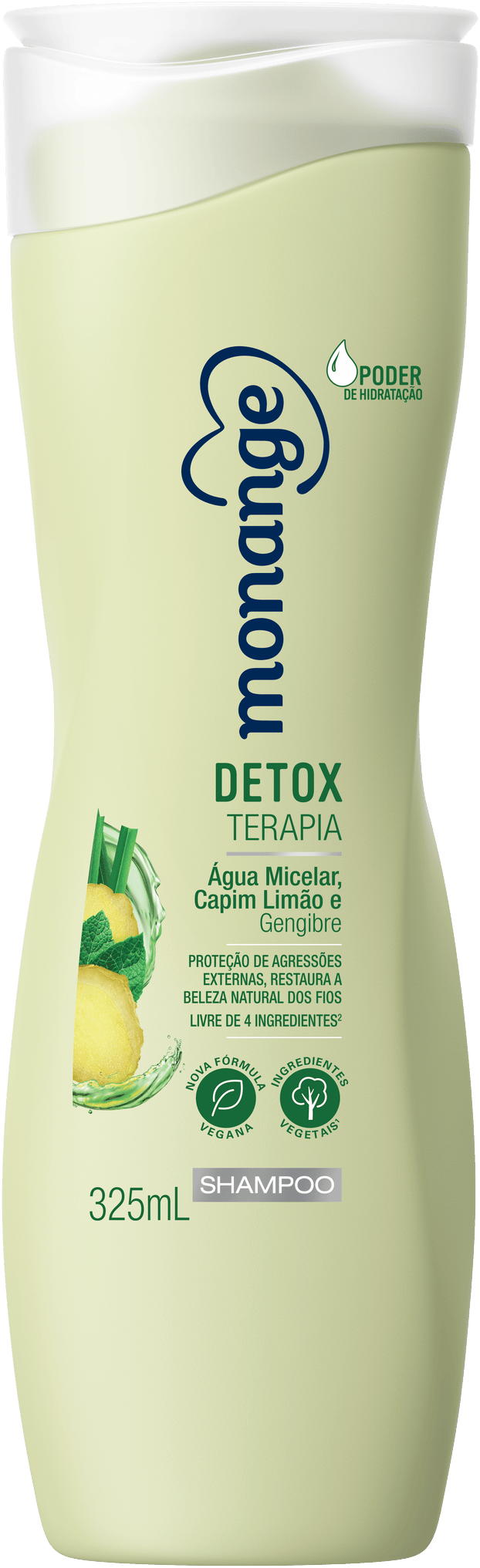 O Shampoo Monange Detox Terapia Monange promove uma limpeza profunda e restaura a beleza natural dos fios. Conta com a poderosa combinação de Água Micelar, Capim Limão e Gengibre, que garante brilho e maciez para seus fios e proteção de agressões externas. Para melhores resultados, é recomendado também o uso do condicionador da linha Detox Terapia.